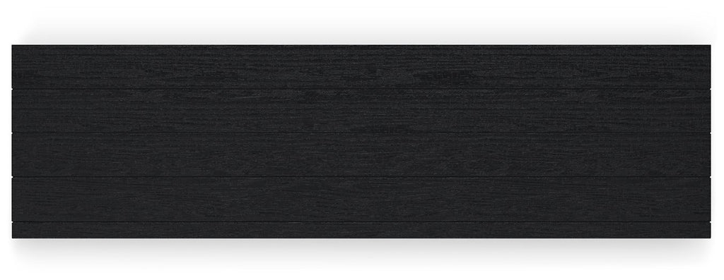 - Textured black wood stain with waxy topcoat