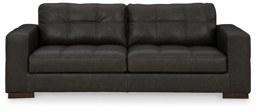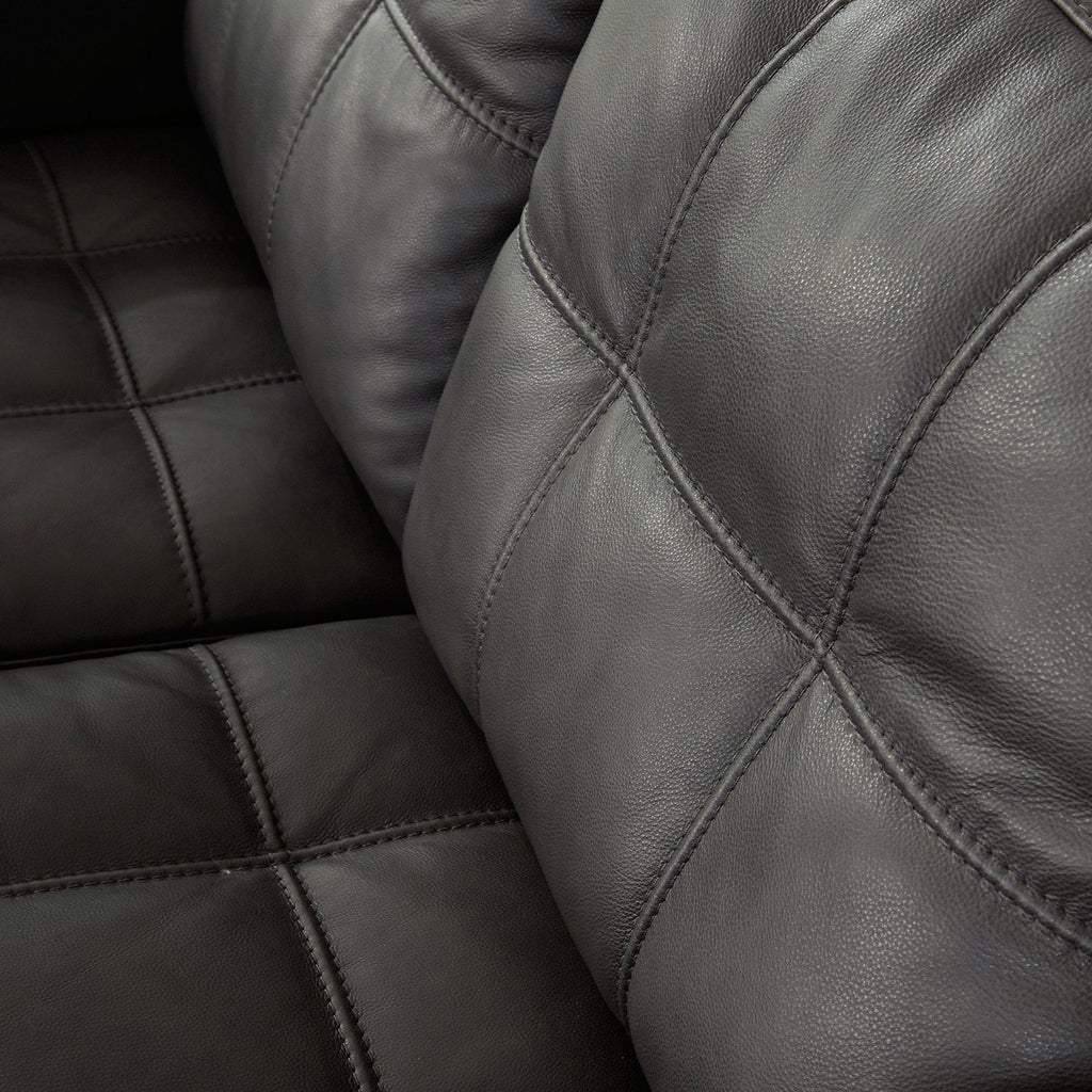- Genuine leather covers inside areas such as the back, seat and arm cushions; skillfully matched faux leather covers the remaining areas
