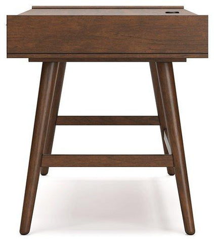 A refreshed take on retro aesthetics. This home office desk adds an air of playful simplicity to your workspace, capturing the architectural language of mid-century stylings. Subtle in design, it invites the eye with a sleek, open frame. A casual, yet timeless, finish and three storage drawers complete this study in form and function.
