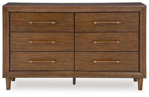 This dresser is perfect for contemporary or mid-century interiors. Its wood-tone finish is versatile and timeless. The drawers, designed with exquisite framing and elongated wooden pulls, enhance the overall aesthetic. Whether you want to refresh your entire bedroom or add a few key pieces, this is the ideal choice.