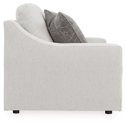 Clean lines and a streamlined silhouette define the architectural attitude of this loveseat. Textured accent pillows in complementary colors add subtle contrast. The loveseat's plush reversible cushions beckon you to sit down, get comfy and relax completely.