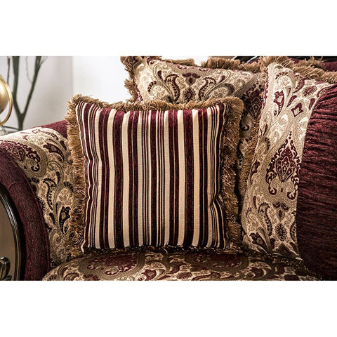 This is American-made Victorian elegance defined. Ornate wood construction hosts a combination of burgundy chenille and antique paisley fabrics to boast a design befitting of royalty! It's the couch guaranteed to be a centerpiece of conversation.