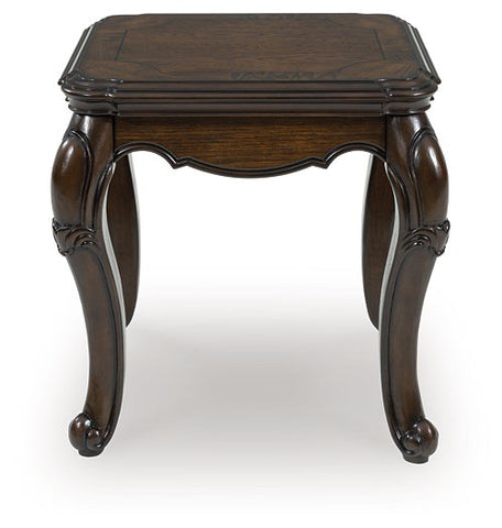 Lavish, luxurious living is within reach when you add this end table to your living room. Recalling a classic sense of refinement, its elegant scrolled legs make a beautifully bold statement. Ornate details on the apron add an air of opulence to the regal dark brown finish. The look is timeless. The feel? Right at home.