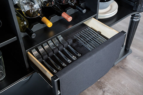 Table + 6 Chairs, Glam, Fabric, Solid Wood, Wood Veneer, Others, Upholstered Seats, Turned Fluted Legs, Silverware Tray Storage & Wine Rack on Server