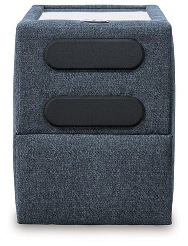 - Console with removable plexiglass top; pull-out drawer for storage; built-in audio sound system with wireless connectivity; audio controls located on console; USB charging