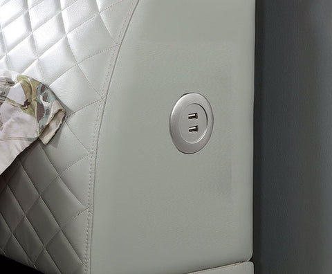 For the tech enthusiast, this comfy bed is a special combination of innovation and comfort. Completely upholstered in smooth leatherette, the stylized structure of the headboard supports two separate adjustable headrests and a total of four USB charging ports, two on each side of the bed. The headboard also features padded diamond stitching for a look that's both classy and dynamic.