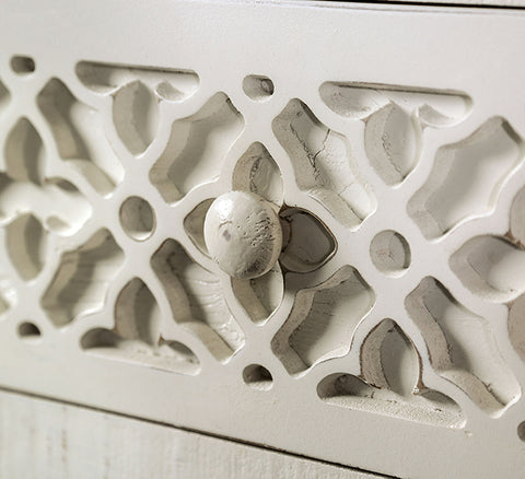 This lighter tone ensemble will be a great addition to any farmhouse space. Between the light vintage ivory frames to the contrasting rustic gray crown moldings, each piece exudes irresistible charm. And then there's the attention to detail: each piece is meticulously hand-painted and hand-finished for that exotic distressed look. So much has gone into the construction as well; each drawer feature English dovetails and ball-bearing metal side glides for maximum weight capacity. Finally, the set is made of sustainably sourced pine wood.