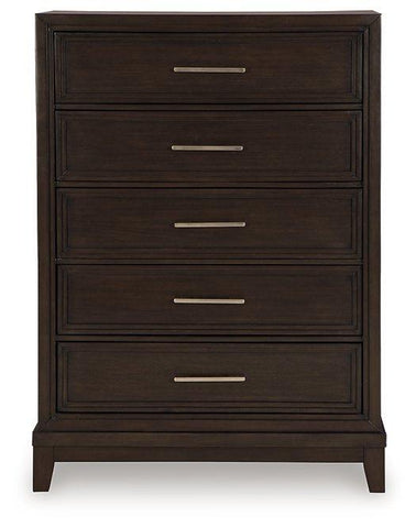 - 5 smooth-gliding drawers with dovetail construction and heavy duty ball-bearing side glides (top drawers felt lined)