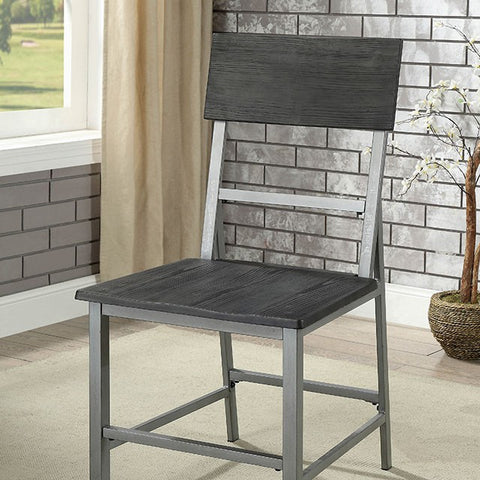 This handsome dining room set lends to your room a modern style with plenty of flexibility. The minimalistic design allows it to match numerous settings by providing you an almost empty canvas for complimenting table top Decor and surroundings. Contoured seating, panel style backs and a metal frame lend to the contemporary look but a powder coated finish and dark wood tones down that stylistic direction to a more adaptable level.
