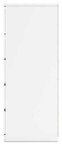 Create the modern bedroom of your dreams. This chest of drawers offers a minimal design with maximum style, combining ultra-clean lines and an easy-elegant solid white finish with a hardware-less aesthetic. Spacious drawers with ball-bearing glides make putting things away a snap.