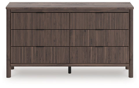 Crafted with both form and function in mind, this dresser with mirror brings a dash of retro-cool character to your modern boho aesthetic. Reeded accents add an on-trend touch to its classic silhouette. Warmly welcoming with a rich brown finish, this set pairs well with muted hues, earth tones and other neutrals alike. What a refined take on easygoing style.