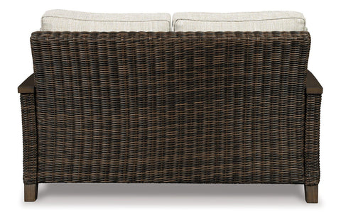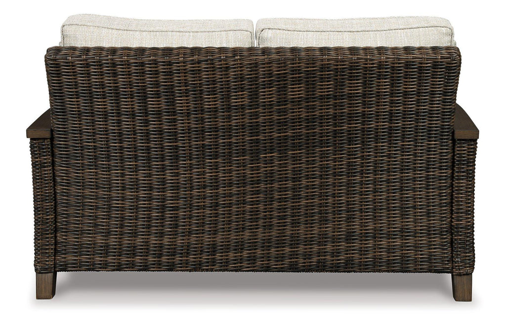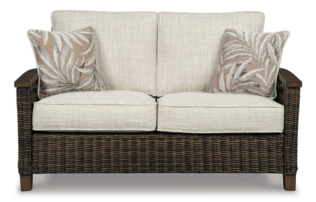 Pretty enough for trendy interiors, yet durable enough to weather the elements, the Paradise Trail outdoor loveseat rises to the challenge beautifully. Handwoven resin wicker over rust-proof aluminum merges high style with low maintenance. Rest assured, though the exposed armrests and feet look remarkably like wood, their sturdy aluminum construction is perfectly suited for alfresco living. Plush seat cushions and throw pillows wrapped in high-performing NuvellaĀ® fabric aim to please.