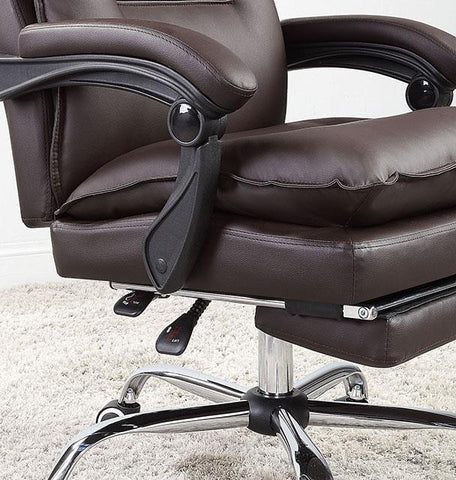 PERCE Office Chair, Brown, UPRIGHT: 27"W X 29 1/2 (UP TO 44) "D X 46 3/4 (UP TO 50) "H, RECLINED: 27"W X 60 1/2"D X 37"H (SEAT HT: 20 1/2" UP TO 23 5/8", SEAT DP: 17 1/2"), 50.6lbs. For those working from home, nothing is more important than getting job done and doing so in the most comfortable manner. That's why the Perce office chairs are designed with your simple comforts in mind--the padded armrests and footpads, height-adjustable seat, and an infinite angle lock that reclines up to 155 degrees.