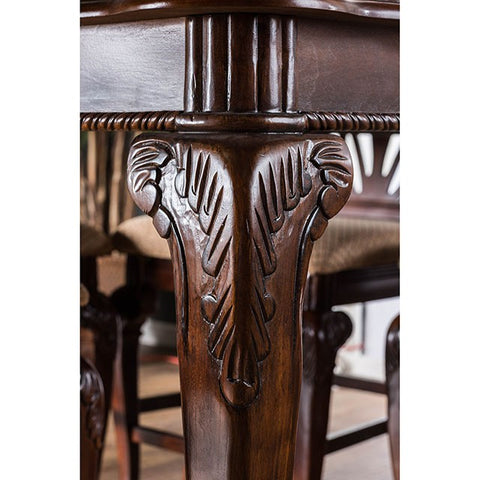 PETERSBURG II Cherry Counter Ht. Table, 54"(36" + 1 X 18"Leaf)L X 54"W X 36"H, 118.8lbs. This bold traditional style table is ideal to fit any grand dining space within the home. This piece is available in dual sizes, has claw feet fine points, and spacious seating space perfect to accommodate any dining function. Features: Traditional Style Counter Height Chairs Padded Fabric Chair Cushions Curved Claw Feet Solid Wood, Wood Veneer, Others Cherry Finish