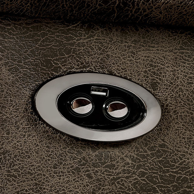 Spend the rest of your day winding down in this loveseat. With power-controlled mechanisms, relaxation is just a push of a button away! Flip up the footrests and lean back to find that perfect angle as you rest your head and arms on the plush leatherette. The center console holds two cups and also offers storage for your remotes or magazines. Meanwhile, contrasting stitches pop against the inoffensive mocha color, for a no-frills piece that just gets the job done.