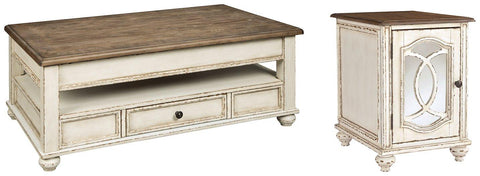Elevating the art of traditional cottage styling, this occasional table set is sure to serve you beautifully for years to come. Antiqued two-tone aesthetic blends a chipped white with a distressed wood finished top for added charm. Classic cabriole legs and shapely lower shelf are a lovely twist. Decorative corbels add refinement.