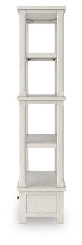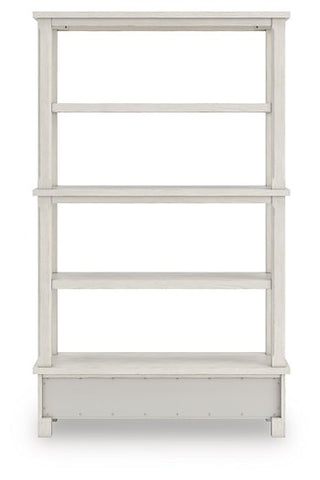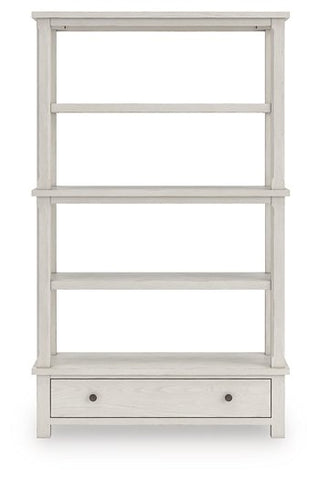 This bookcase is sure to impress when it’s time to study or work from home. With its antiqued white finish and wood grain texture, modern farmhouse-style workstations have never been so fashionable. The open four-shelf design—two adjustable and two fixed—is ideal for storage and displaying your treasures. And that large storage drawer brings even more function to your workspace. All that’s missing is you.