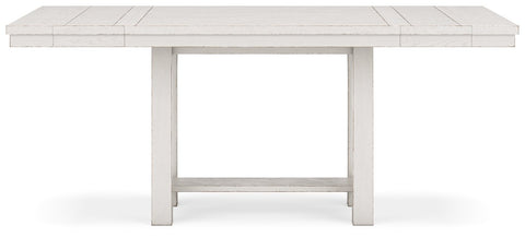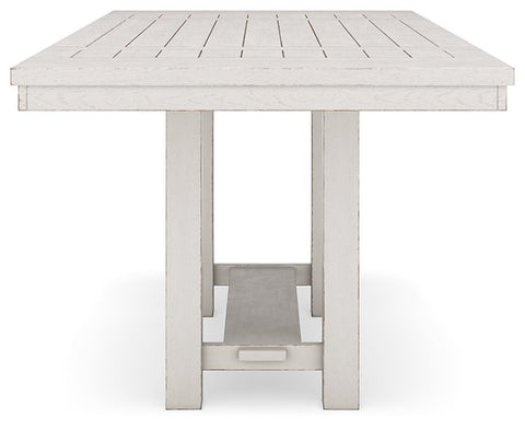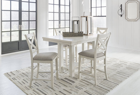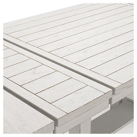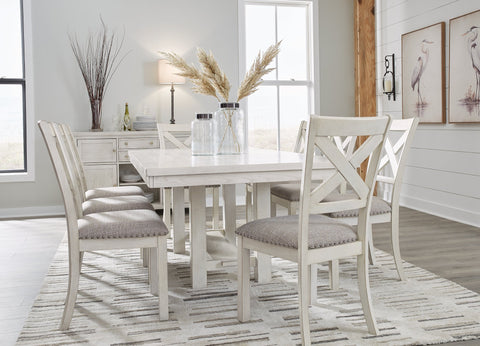 This dining package is sure to impress come mealtime. With its antiqued white finish and a planked effect tabletop, farmhouse-style dining has never been so fashionable. All that’s missing is you and your family.