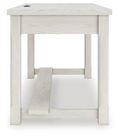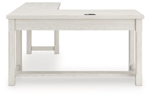 This L-shaped home office desk is sure to impress when it’s time to study or work from home. With its antiqued white finish and wood grain texture, modern farmhouse-style workstations have never been so fashionable. A wide keyboard drawer and convenient USB charging bring function galore to your at-home office. The desk return expands your workspace and adds spacious drawers to keep all your stuff organized. All that’s missing is you.