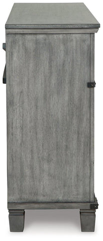 What's old is what's new with this dresser. Serving up a fresh look in urban farmhouse style, this eclectic piece features a light weathered gray finish with dark aged bronze-tone accents and metal straps for a casually cool sensibility. Profiled drawer frames, thick-profiled top moulding and tapered legs are the earmarks of timeless design.