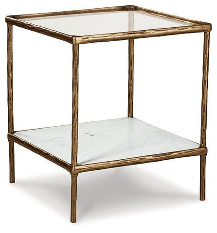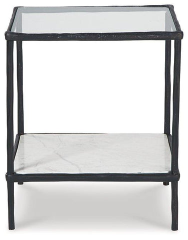 Classic in design with a dash of textural appeal, this accent table provides both flair and function. The glass tabletop offers the perfect perch for a lamp, while the white marble lower shelf is ideal for resting trendy coffee table books and other decorative pieces. An antiqued black finish on the frame has an edgy look that remains versatile, suiting spaces from casual to contemporary.