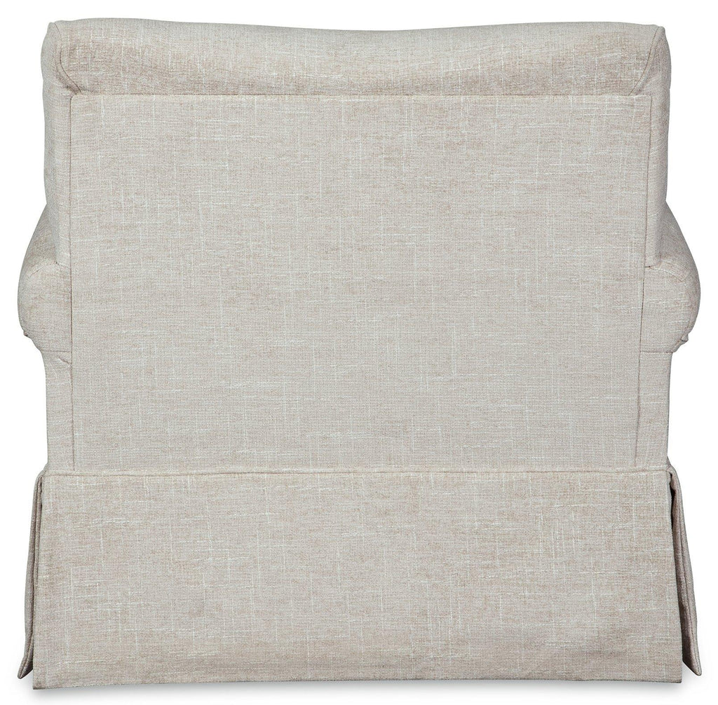 Thanks to its tailored skirt, this swivel glider accent chair sure doesn’t look like it can do a 360, but you’ll love the fact that it can. Whether your style is shabby chic, modern farmhouse or American classic, this swivel chair is sure to be sitting pretty.