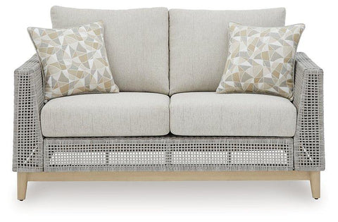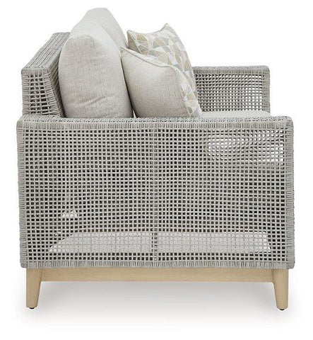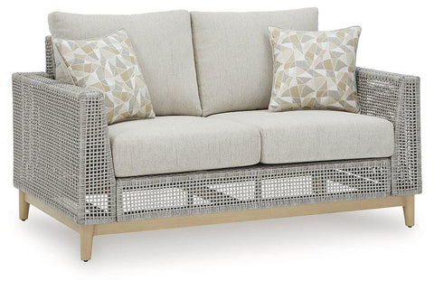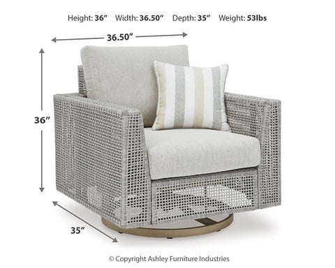 This outdoor seating package invites your casual contemporary style outdoors. Its resin wicker in a chic neutral hue expertly marries refined design with durability. Breezy summer mornings and cold winter nights are made all the more comfortable with high-performance Nuvella+ fabric covering the seat cushion.