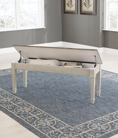 This bench invites you to strike a note for small space living. An inspired choice for coastal chic or modern farmhouse settings, this piano style bench with under seat storage sports a grayish white finish with rub through effect for timeworn appeal.