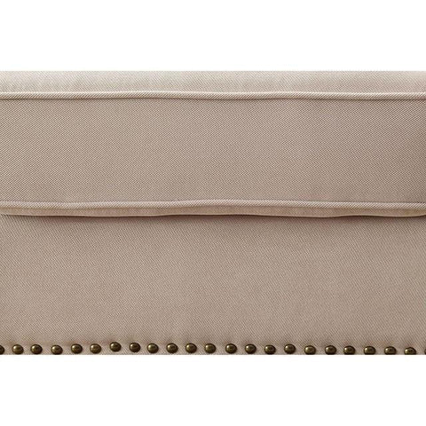 SKYLER Beige Sectional, 125 1/4"L X 97"W X 36 1/4"H, 302.4lbs. Enjoy the cozy feel of this lavish sofa set with its warm and inviting design. The padded chenille fabric brightens any room with its ivory coloring and comes paired with gorgeous accent pillows. Rolled arms and plush backrest pillows work together t o provide superior comfort for years to come. Features: Transitional Style Fabric Rolled Arms Pillows Included Nailhead Trim Ivory