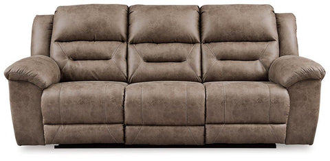 For those that love the cool look of leather but long for the warm feel of fabric, this reclining sofa, reclining loveseat and rocker recliner deliver both with ease. Its high-performance padded faux leather is remarkably durable and easy to clean, just the thing for family spaces. Channel-stitched back cushions provide indulgent lumbar support for maximum comfortānot to mention fashion-forward flair.