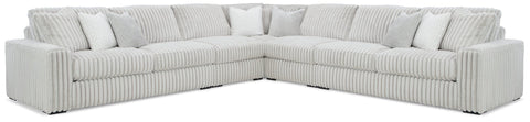 Don’t want to sacrifice standout style for majorly cozy seating? This seating package pairs bold character with sink-in comfort. Its retro-cool jumbo cord over feather-blend cushions creates a luxuriously soft lounging experience.
