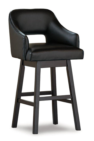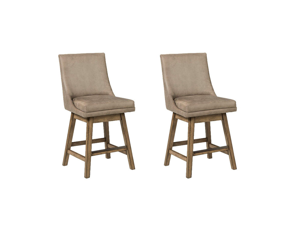 This striking barstool set invites you to take contemporary modern style for a spin. Comfortably cushioned seat, self-returning swivel and contoured back make it beautifully in tune with your needs. Luxurious woven upholstery is a sensational touch.