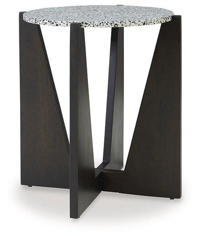Give your contemporary living room a fashionably functional upgrade. This accent table is a stylish seat companion, keeping morning coffee and weekend cocktails within easy reach as you lounge. Whether your space is all neutral or bright with pops of color, the table’s black and white terrazzo top fits right in.