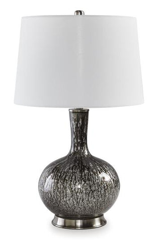 Product Details- Made of glass and metal with modified drum hardback fabric shade