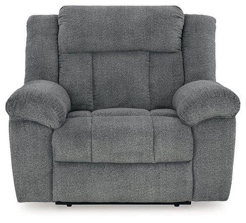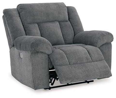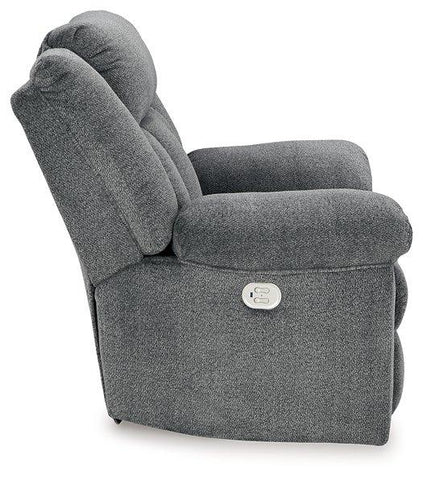 Big, bold comfort. Game time and movie nights meet their match with this power recliner. Made for ultimate indulgence, an extra-deep seat encourages you to sit back and bliss out. Customize the recliner and headrest to find your ideal viewing position with effortless one-touch controls. And with plush upholstery in a trendy hue, you wonāt need to sacrifice style for cozy seating.