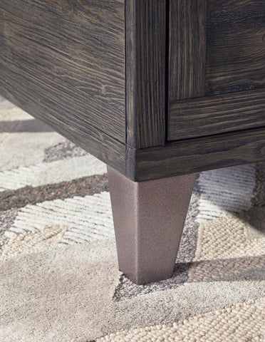 With its mixed material design, this occasional table set truly elevates rustic-industrial style. Weather-washed pine wood and veneers are contrasted with canted metal legs and corner bracket accents for a uniquely chic merger of earthy beauty and contemporary flair.