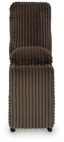 Experience unparalleled comfort with this reclining sectional with chaise. It’s a stylish and invitingly soft look—made all the more appealing by cozy corduroy cushions that feel great and add a touch of texture. The rich chocolate brown upholstery effortlessly blends into your decor, making it a gorgeous addition to your home. So sit back and unwind in this spacious set, perfect for gatherings with friends and family.