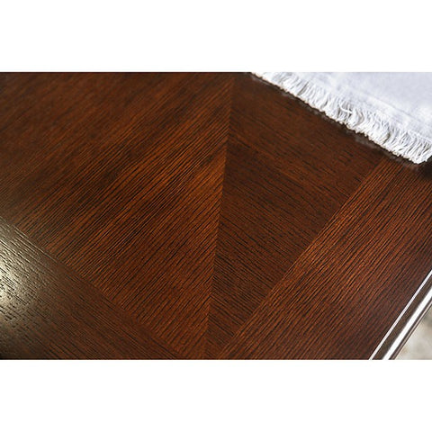Complement a dining room with this classic dining set for six or eight finished in dark walnut. The matching side chairs feature a delicate floral motif and have padded seats. Two table sizes are available.