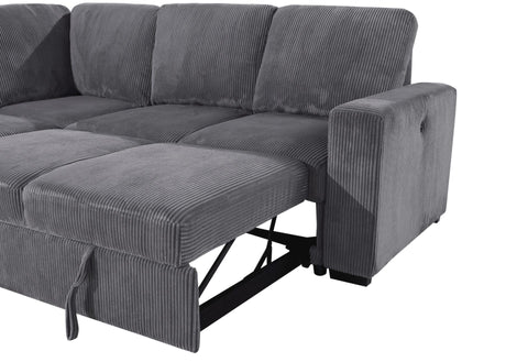 Finished in a handsome Grey corduroy fabric, this sectional exudes a contemporary charm that effortlessly complements a variety of interior styles. The luxurious fabric adds a cozy and inviting feel to your living room, creating a warm and welcoming atmosphere for you and your guests.