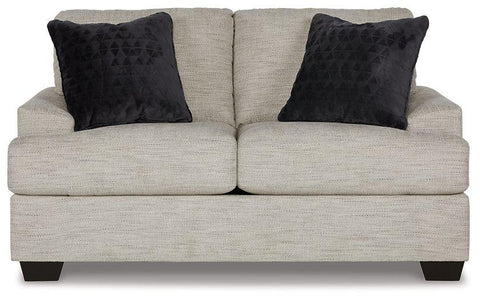 Laid-back luxury meets neutral practicality in this seating package. Taking its cues from contemporary design, the clean-lined set is outfitted with angular arms for a layer of geometric expression. Softly upholstered, sizable cushions keep you comfortable. With these pieces, winning style and superb functionality go hand in hand.
