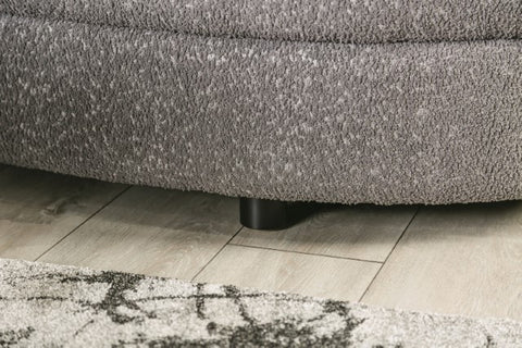 Compact fitted kidney-shaped single cushion, curved arms and backrest, and barely-there wooden legs contribute to this piece's tight fit and ultra comfort. Besides the intriguing shape, the other draw here is the visual impact it brings to any modern space. The boucle fabric features metallic undertones which when paired with a neutral color palette under certain lighting conditions, allow the texture to glitter and shine in the most undeniably chic way.