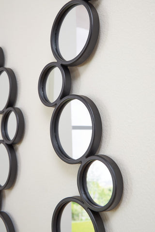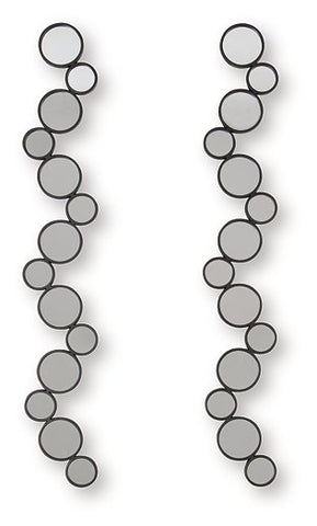 Time to refresh your walls? This accent mirror set is ready to introduce some modern whimsy. A playful arrangement of circular mirrors creates a unique and eye-catching design, while the black frames add a sleek, sophisticated touch. You can hang them four ways—yes, four—to create a custom look that complements your fabulous style.