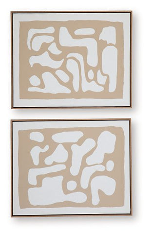 The abstract shapes and neutral hues of this wall art set are a reflection of your modern taste. Hand painting highlights the attention to craftsmanship, with light brown frames elegantly completing the duo. And each piece hangs four ways, giving you the flexibility to switch up their staging.