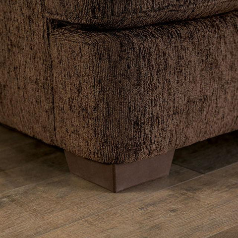 Nothing says home like a nice earth-tone piece. The warmth that this sectional brings may be attributed to its daring color theme: the base chenille fabric is in dark brown accentuated with pops of orange and rustic hues found in the throw pillows. But the inviting feeling is more than skin-deep; it also features classic elements of the English sofa pleated, curved low arms and traditional T-cushions which are known for the welcoming comfort they provide.