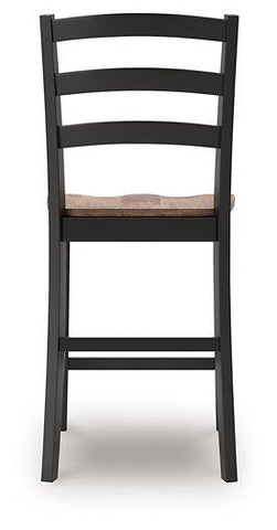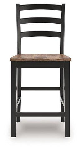 This counter height bar stool dresses up your favorite farmhouse motifs with modern flair. A contoured butcher-block style seat keeps you comfortable and provides a ruggedly chic contrast to the sleek black frame.