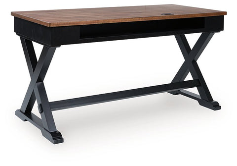 Raise the bar on modern farmhouse style with this home office desk and return. Its casual good looks are accentuated with a two-tone finish, which pairs a warm satin black base with a contrasting butcher block veneer desktop. The drop-down keyboard and two smooth-gliding drawers bring both form and function to your at-home workspace, while a cord management raceway keeps those annoying electronic connections neatly in place.