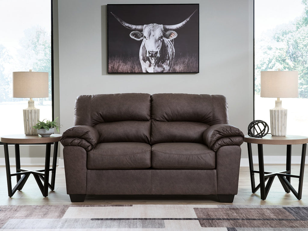 Modern comfort never looked so good. Sporting supremely soft yet durable cushions accented with high-fashion jumbo stitching, this stunning loveseat is the ultimate choice in comfortably cool, contemporary style. Its caramel-hued faux leather indulges with an upscale feel and wows like the real thing.