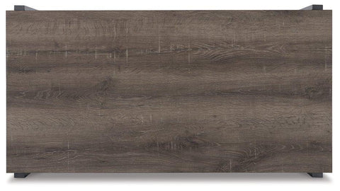 - Laminate features a replicated wood grain with a weathered gray coloration