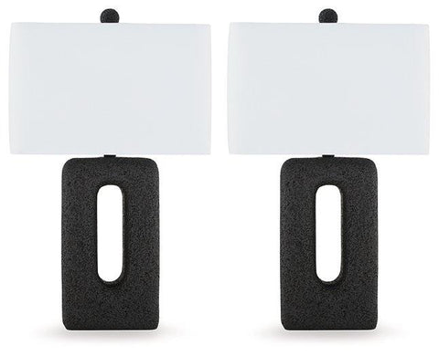 These sculptural table lamps are an enlightening choice for those with an eye for clean-lined, modern design. The textured cutout base and sleek rectangular shade elevate them to an art form. Place these accent lamps on a console table for a touch of chic refinement.