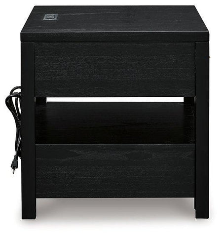 If you are a lover of simplicity, this end table is the perfect choice. Its black finish, casual contemporary design and spacious storage capacity provide functional style wherever it’s displayed. And with conveniently located USB charging ports, this table keeps up with your high-tech lifestyle.